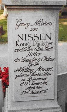 奧地利的墓園《St. Sebastian Cemetery》裡有個幕誌銘頗有趣, 因此成了個小小的觀光景點, 特別標明葬在那裡的 Georg Nikolaus von Nissen 是「Gatte der Witwe Mozart (The husband of Mozarts widow)」.